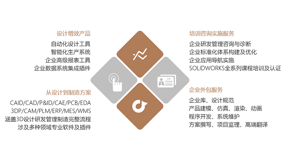 SolidKits致力于為客戶提供專屬的3D數字化產品研發制造整體工具集,以幫助制造業企業提升信息化建設水平和核心競爭力。我們由CAID/CAD/EDA/CAE/PDM/RP/CAM/VR等領域的全球認證精英工程師組成的專家團隊,為您提供先進的技術、先進的設計和管理理念、世界一流的產品、全方面的制造業3D數字化和信息化導航服務。